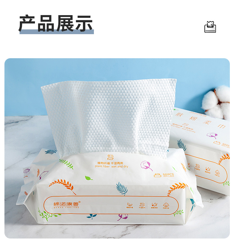 商品名称:棉诺康善 洗脸巾/棉柔巾 50片/袋装*3袋 20*20cm 珍珠纹 偏远不包邮