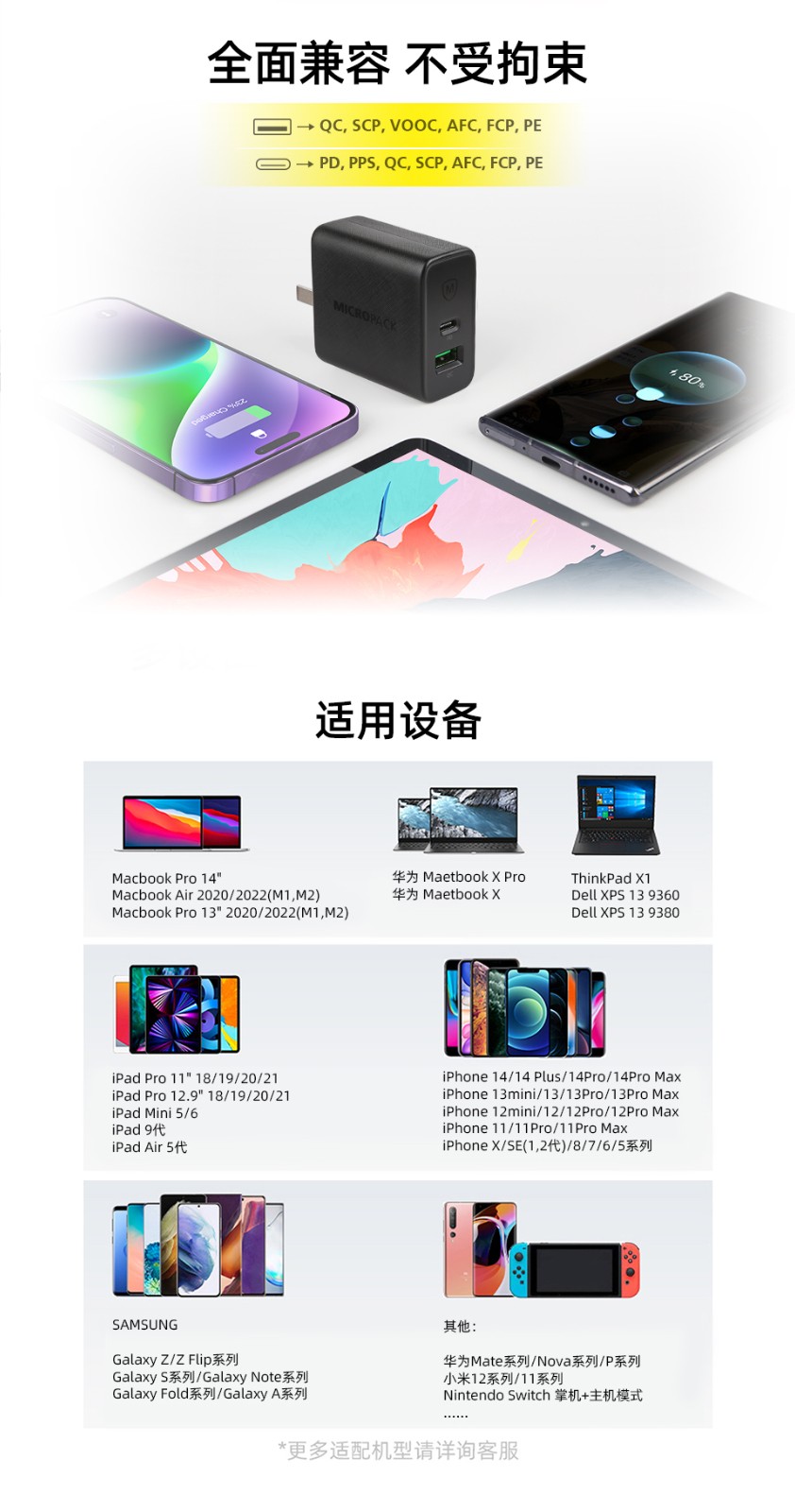 商品名称:迈可派克 MWC-265PD-CN-BK 双口快充PD65W 氮化镓充电座 黑色