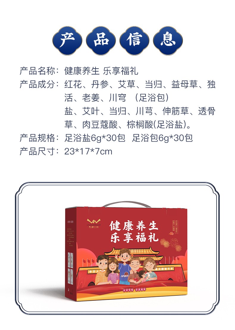 商品名称:礼缘工场 健康养生乐享福礼 足浴盐6g*30包+足浴包6g*30包