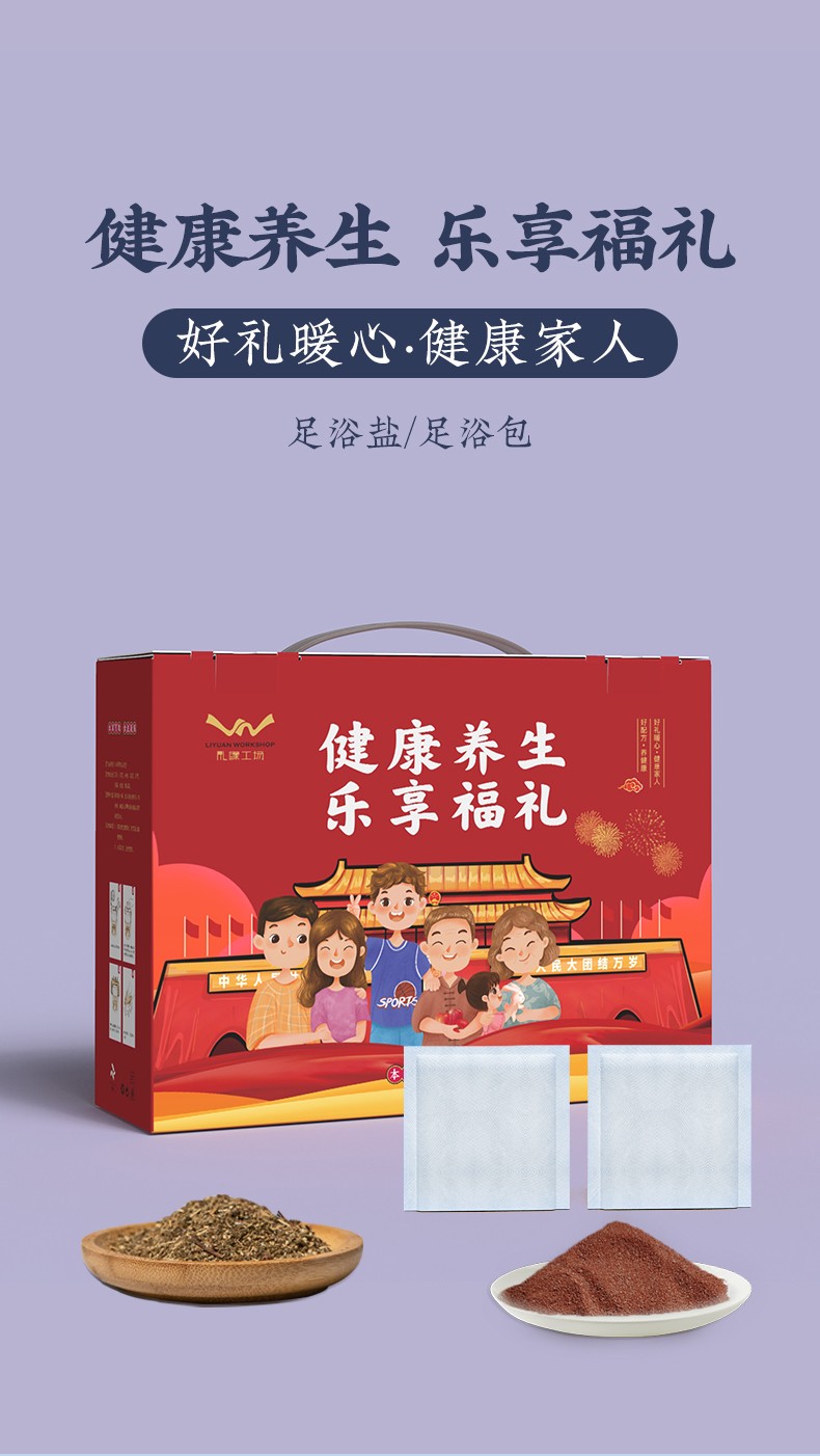 礼缘工场 健康养生乐享福礼 足浴盐6g*30包+足浴包6g*30包