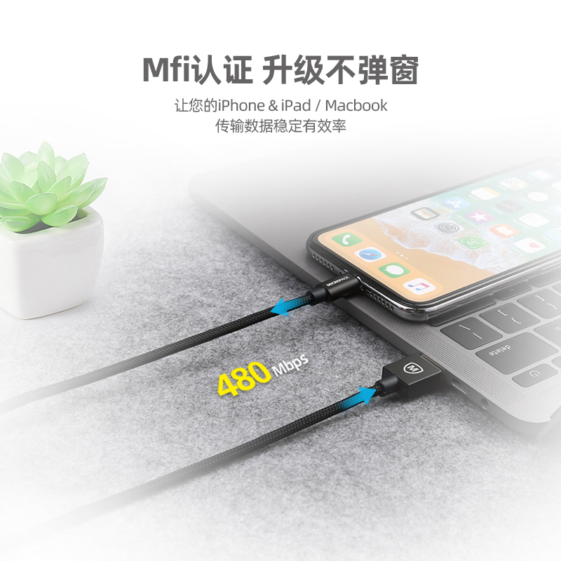 商品名称:迈可派克 I-100 BK MFI苹果认证A-lightning 充电数据线 黑色