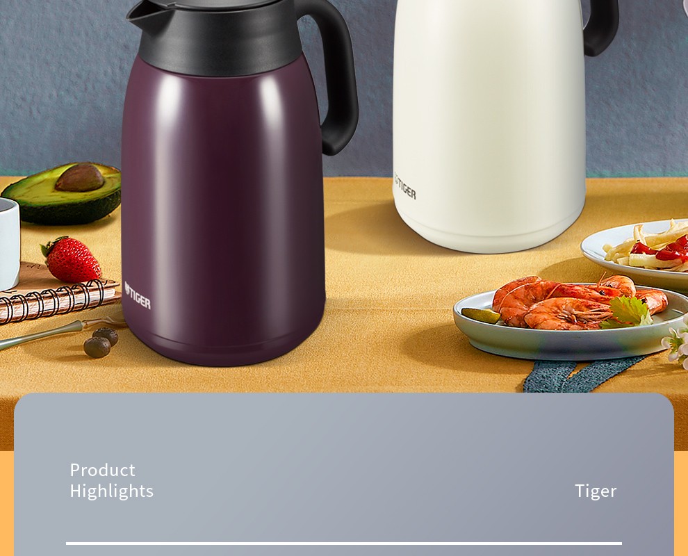 虎牌TIGER不锈钢便携式热水瓶 PWM-A20C 珍珠白/葡萄紫/不锈钢色可选 下单备注颜色