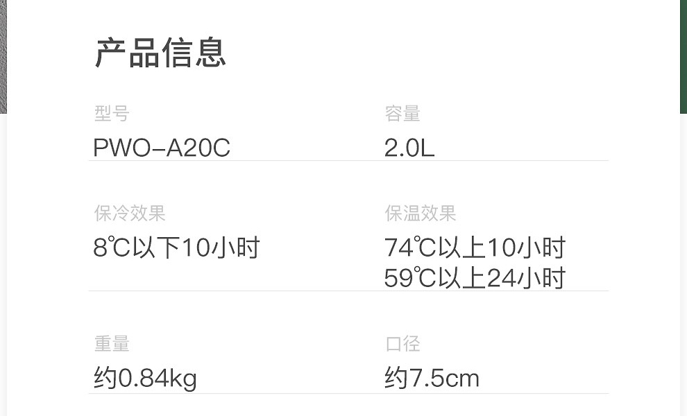 商品名称:虎牌TIGER不锈钢便携式热水瓶 PWO-A20C 白色/灰色可选 下单备注颜色