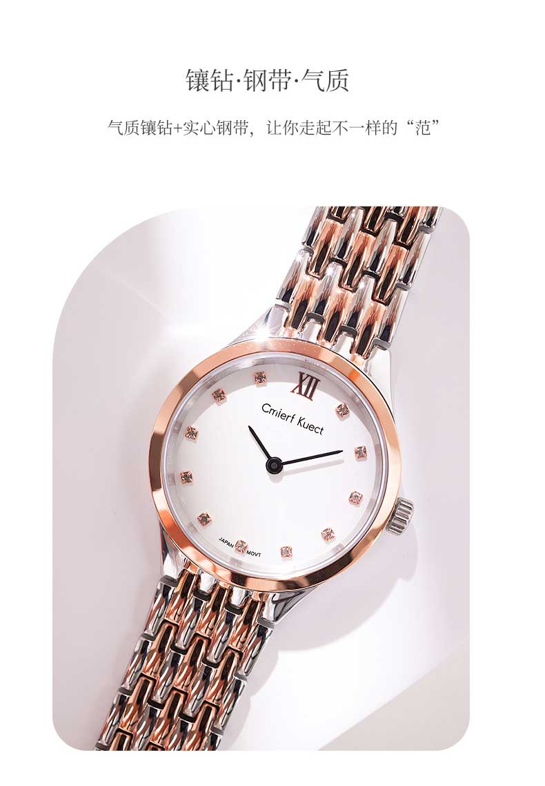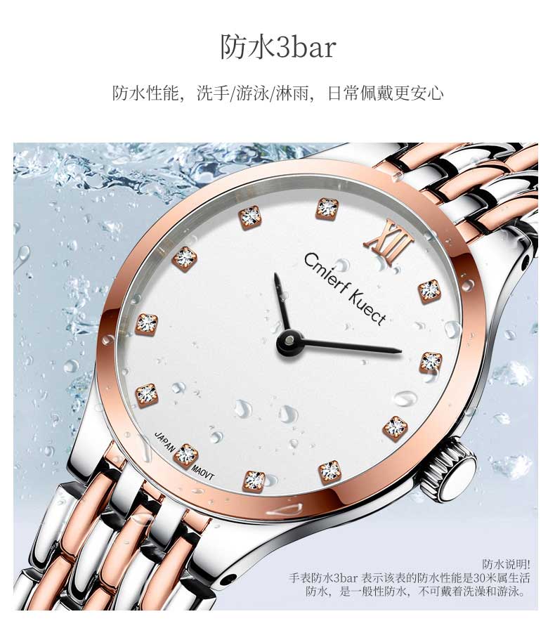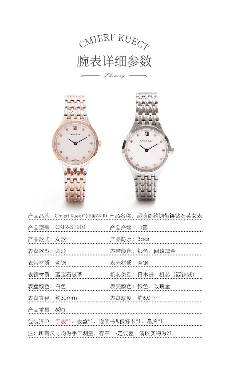 Cmierf Kuect(中国CKIR) 超薄简约钢带镶钻石英女表 CKIR-S1901 银色/间玫瑰金可选 下单备注颜色(新疆,西藏,宁夏,青海,内蒙古,甘肃,黑龙江,吉林,辽宁不发货)