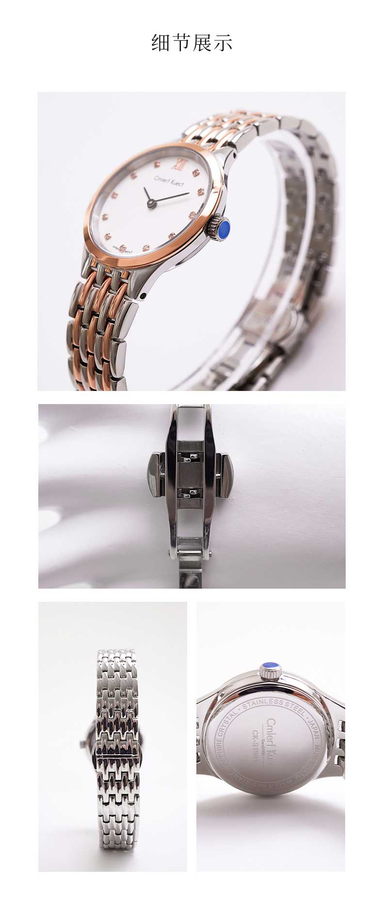 商品名称:Cmierf Kuect(中国CKIR) 超薄简约钢带镶钻石英女表 CKIR-S1901 银色/间玫瑰金可选 下单备注颜色(新疆,西藏,宁夏,青海,内蒙古,甘肃,黑龙江,吉林,辽宁不发货)