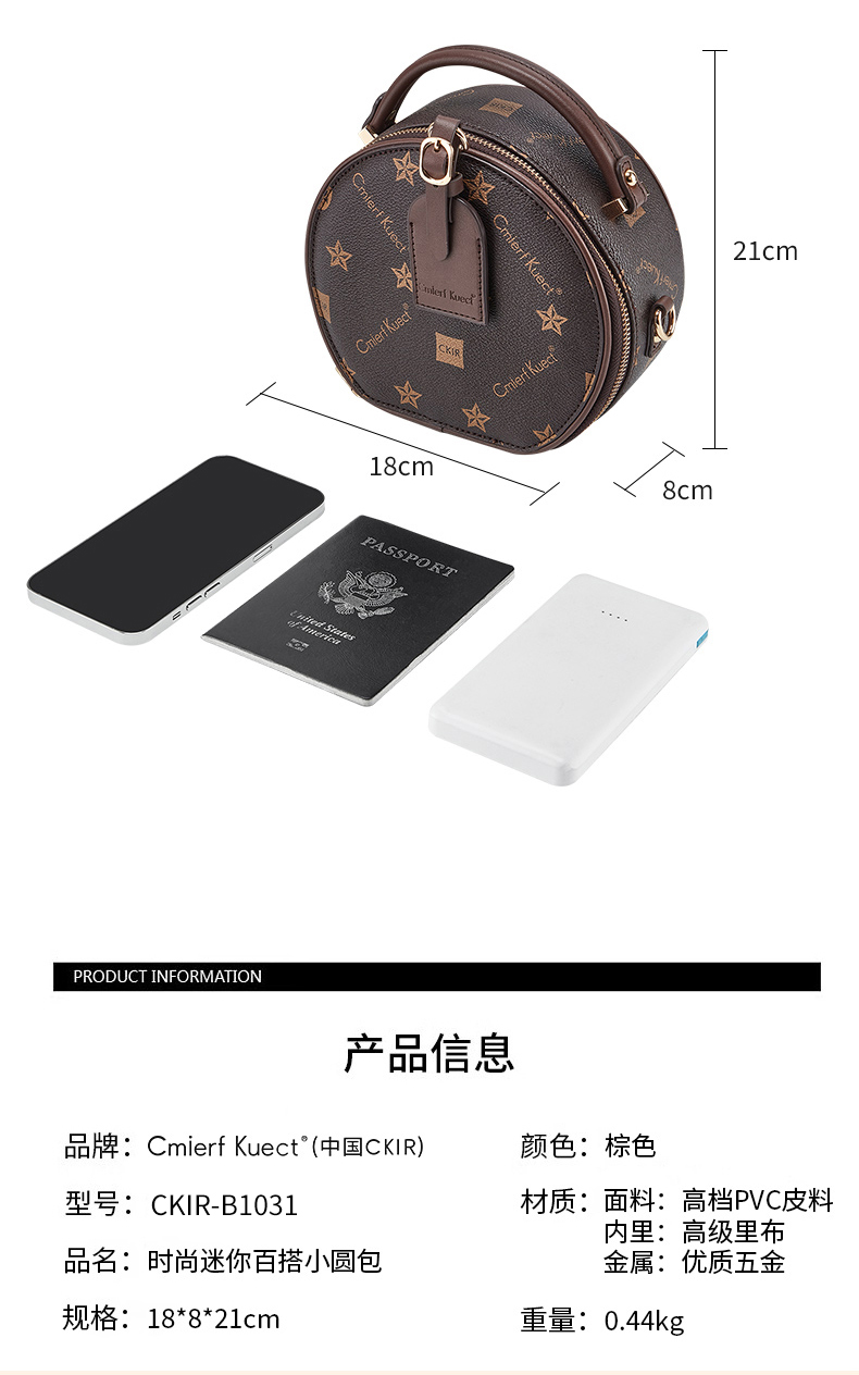 Cmierf Kuect(中国CKIR) 新款时尚迷你百搭小圆包 CKIR-B1031 (新疆,西藏,宁夏,青海,内蒙古,甘肃,黑龙江,吉林,辽宁不发货)
