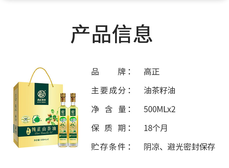 商品名称:高正纯正山茶油双瓶盒装-500ml*2