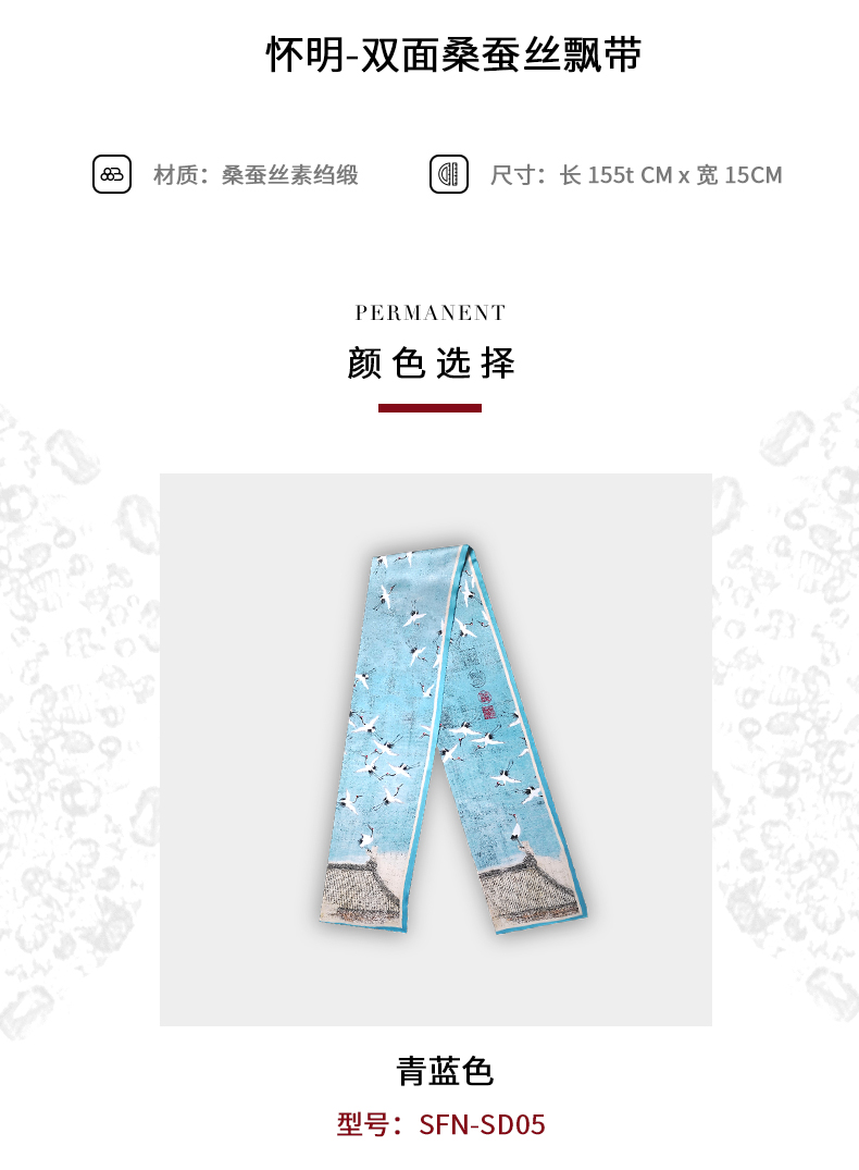 商品名称:圣夫妮 双面真丝长款丝巾-怀明SFN-SD05 16*150cm