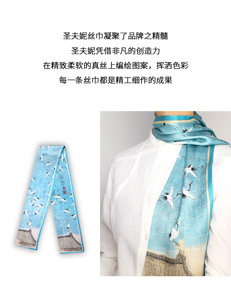 圣夫妮 双面真丝长款丝巾-怀明SFN-SD05 16*150cm