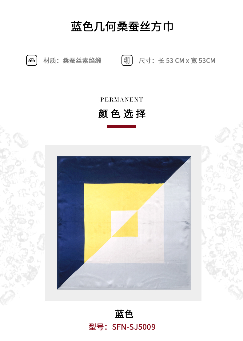 商品名称:圣夫妮 真丝单面印花50方巾-蓝色几何SFN-SJ5009 53*53cm