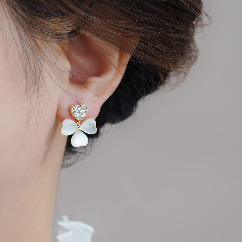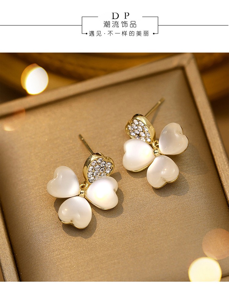 Cmierf Kuect (中国CK) 简约气质猫眼石四叶草耳钉CK-SS070 白金 2.3g (新疆,西藏,宁夏,青海,内蒙古,甘肃,黑龙江,吉林,辽宁不发货)