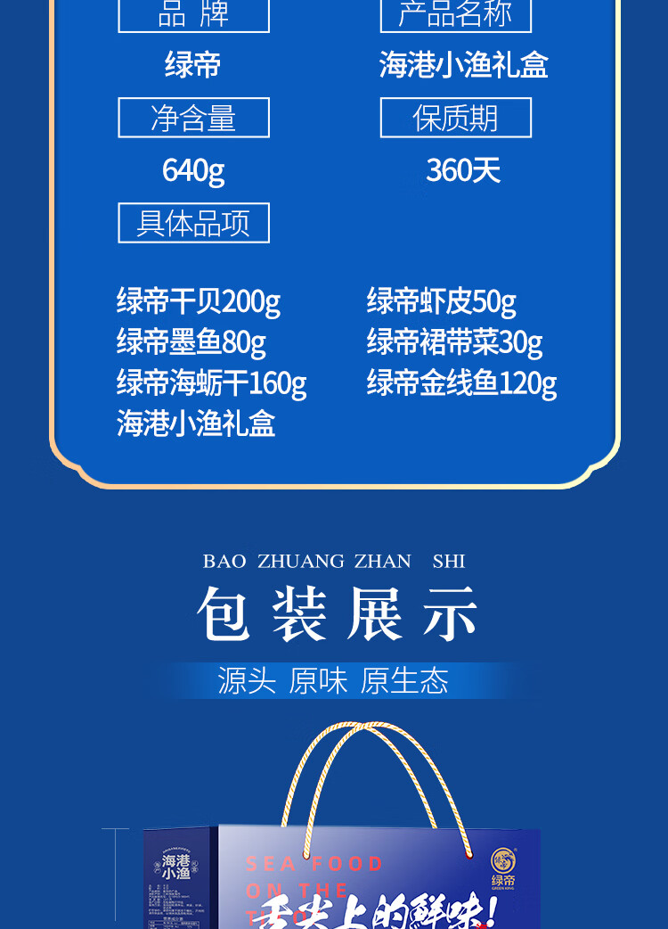 商品名称:绿帝海港小渔海产品干货礼盒640g