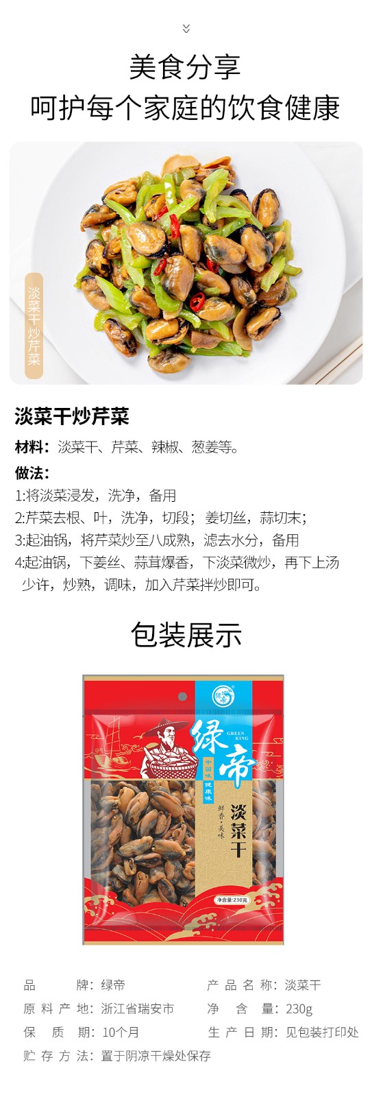 商品名称:绿帝淡菜干230g/袋