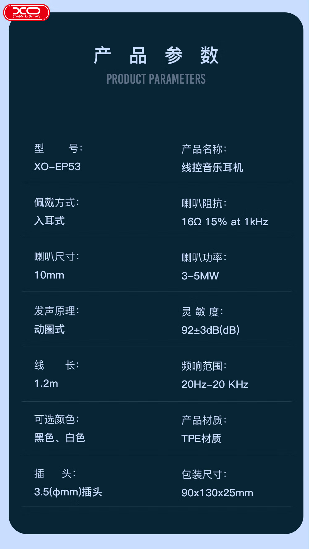 商品名称:XO-EP53 魔眼入耳式耳机 黑/白 可选下单备注颜色