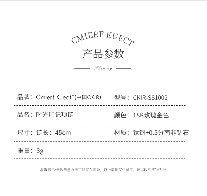 Cmierf Kuect (中国CKIR) 时光印记项链CKIR-SS1002 18K玫瑰金色 (新疆,西藏,宁夏,青海,内蒙古,甘肃,黑龙江,吉林,辽宁不发货)