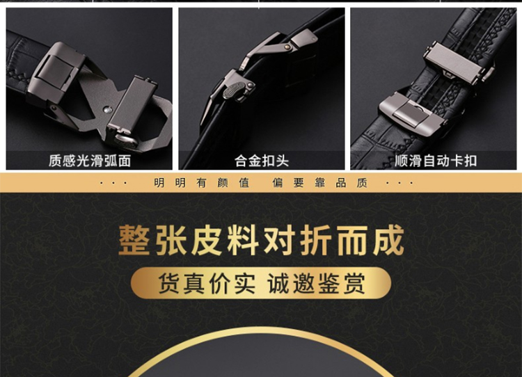 商品名称:丹迪Dante 男士皮带 自动扣牛皮商务腰带男休闲裤带时尚气质皮带男枪色