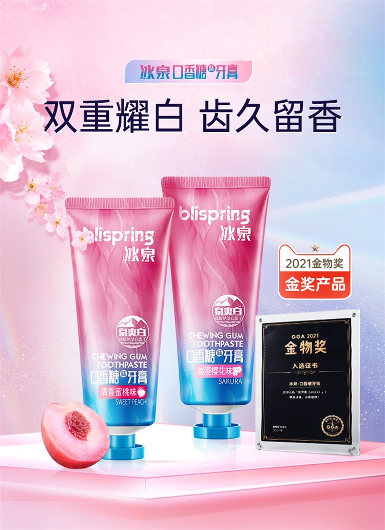 blispring冰泉 冰泉-泉爽白100g口香糖味牙膏 浪漫樱花味