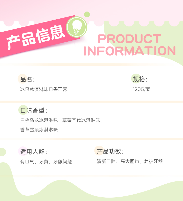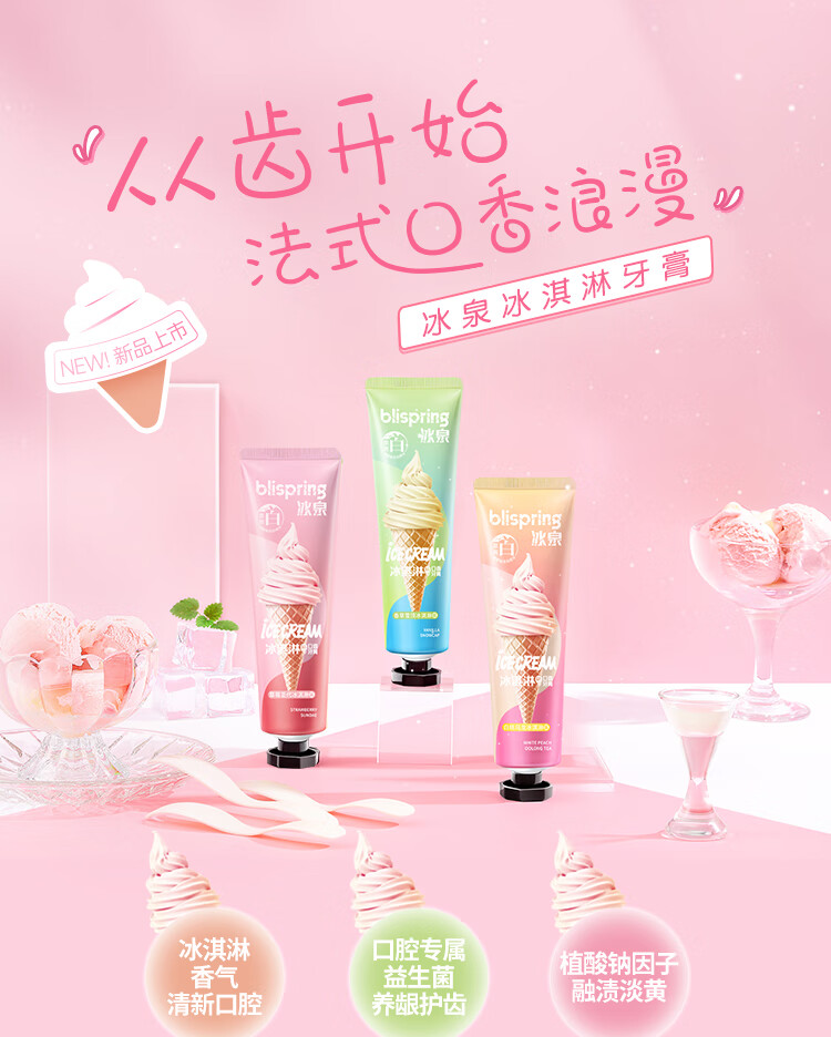 商品名称:blispring冰泉 冰泉120g冰淇淋味口香牙膏三件套 120g*3