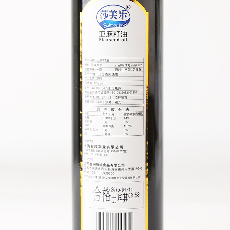 商品名称:莎美乐亚麻籽油礼盒装 500Ml*2瓶