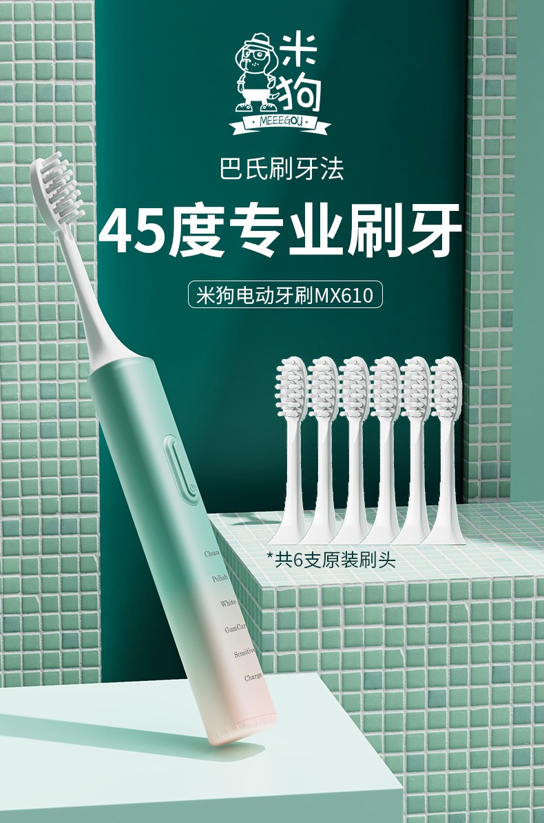 商品名称:米狗MEEEGOU声波电动牙刷MX610 田园绿色