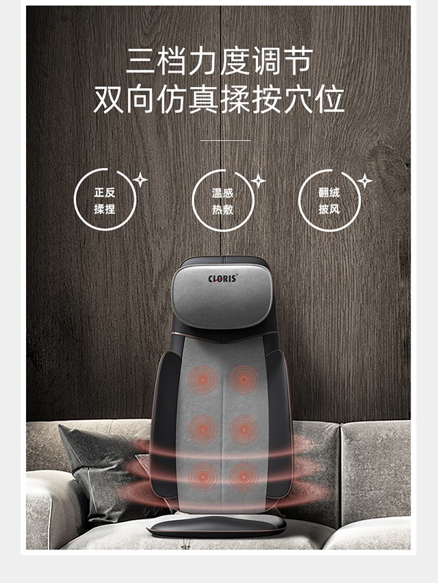 商品名称:凯伦诗 智能按摩靠垫 CLORIS-S730 灰黑