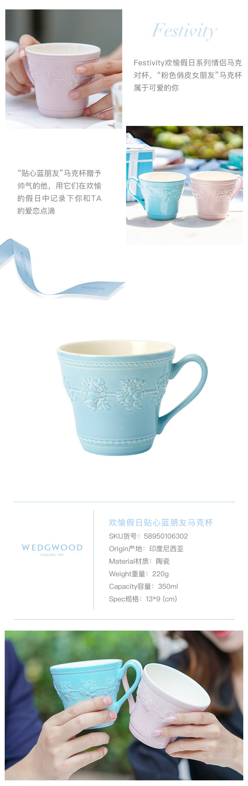 商品名称:WEDGWOOD玮致活 欢愉假日情侣马克杯贴心蓝朋友 单只58950106302