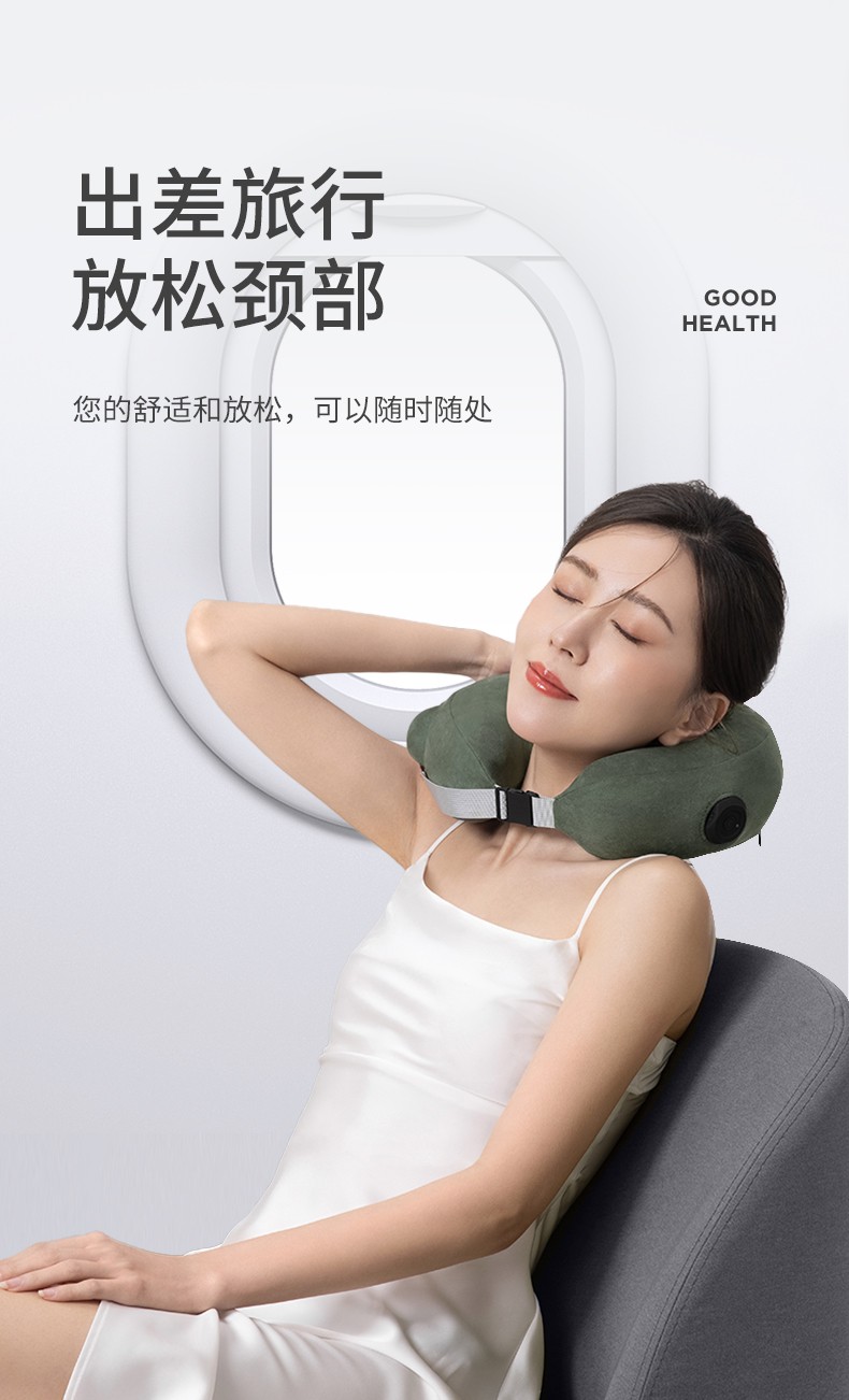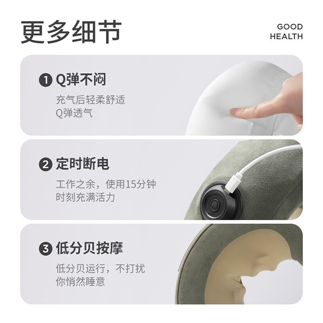左点充气C位枕颈部按摩枕ZD-JZ0101 2000mAH大容量电池