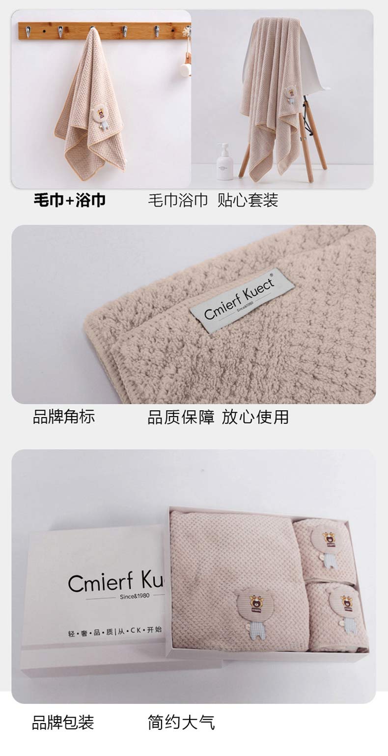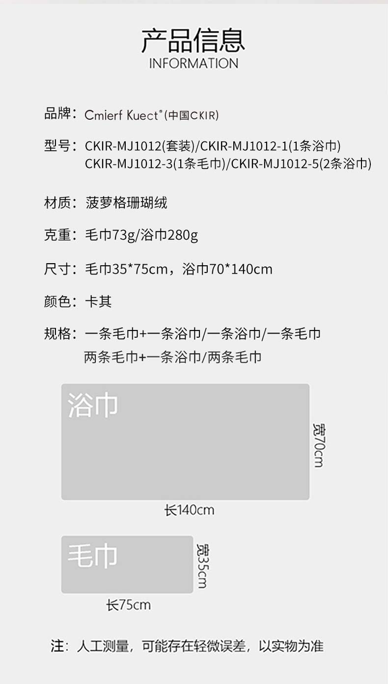 Cmierf Kuect (中国CKIR)菠萝格珊瑚绒套装(一条浴巾+两条毛巾) CKIR-MJ1012 卡其色(新疆,西藏,宁夏,青海,内蒙古,甘肃,黑龙江,吉林,辽宁不发货)
