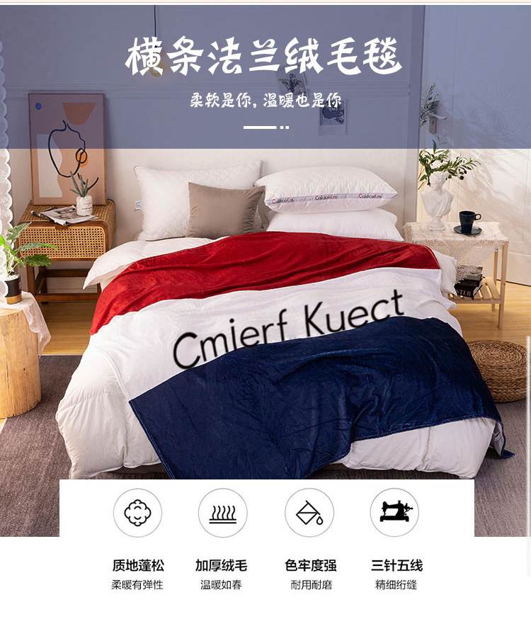 Cmierf Kuect (中国CKIR)横条法兰绒毛毯200*180cm CKIR-JD006 (新疆,西藏,宁夏,青海,内蒙古,甘肃,黑龙江,吉林,辽宁不发货)