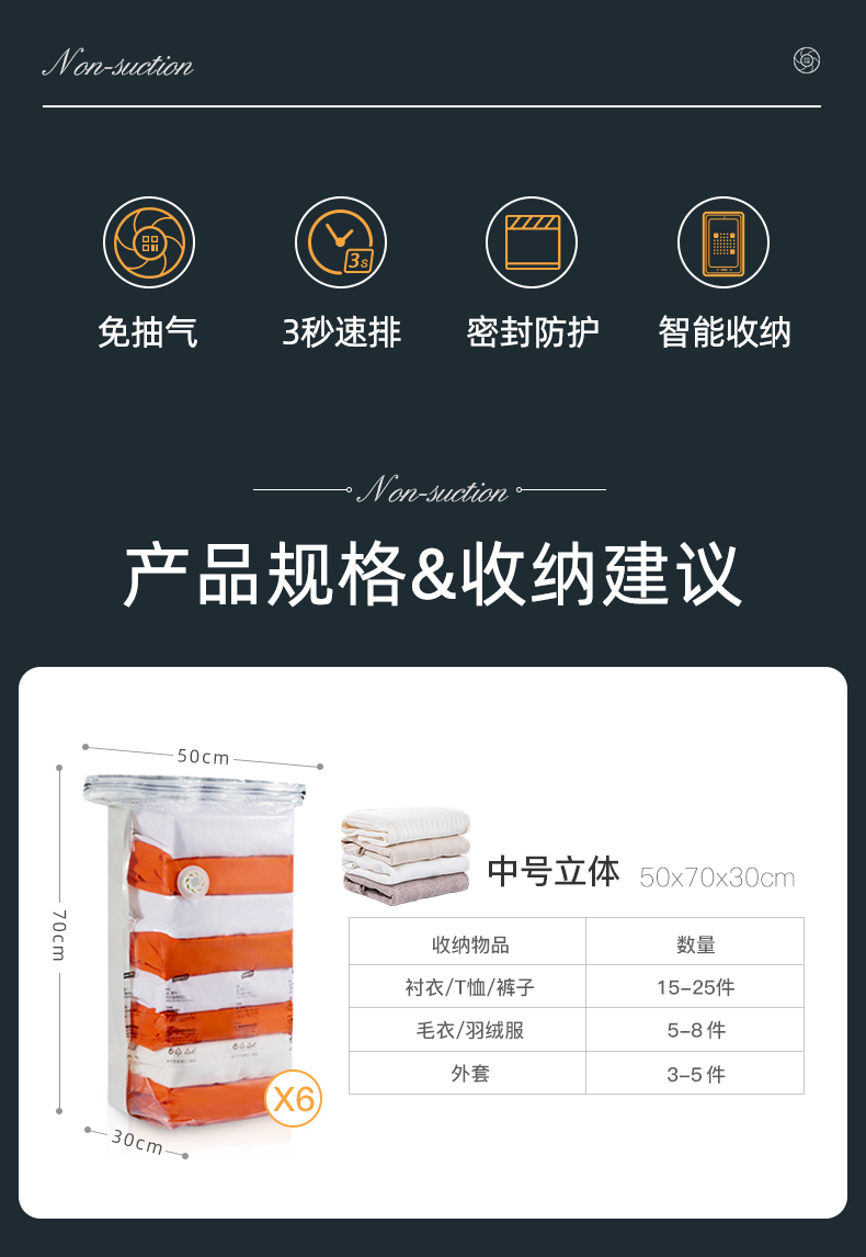商品名称:太力真空免抽气收纳袋组合(6中号立体)AY938