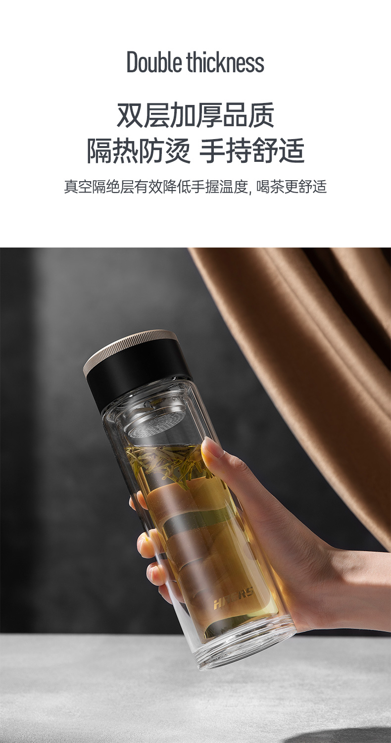 哈尔斯 商务双层玻璃杯320ml HBL-W-320-63 黑金/蓝金 下单备注颜色