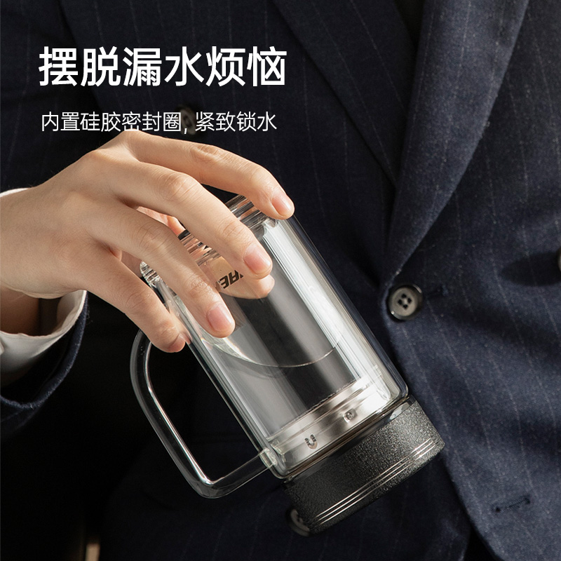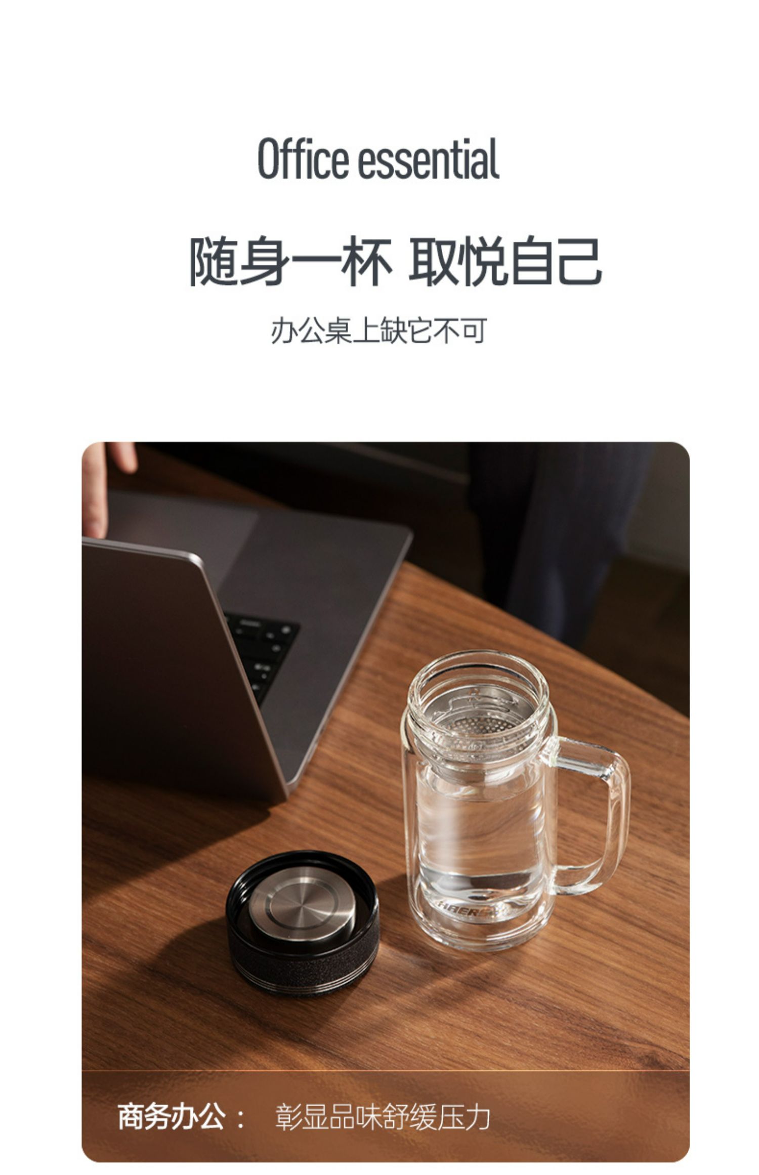 哈尔斯 名仕双层办公杯350ml HBB-350-1 黑色/米色 下单可选备注颜色