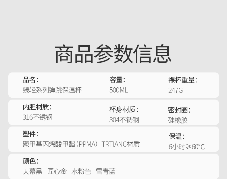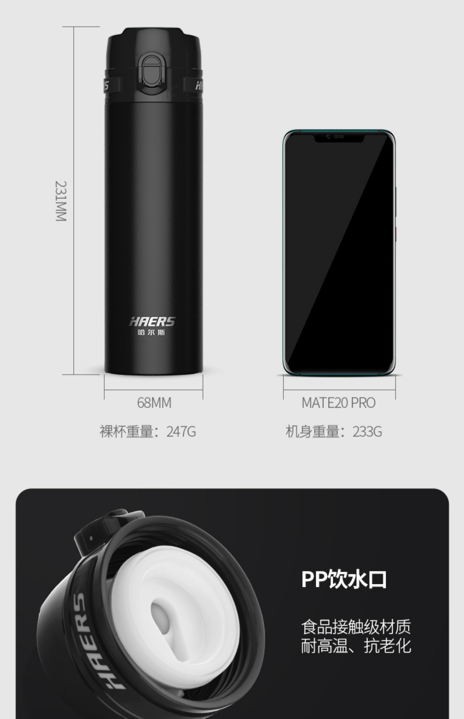 商品名称:哈尔斯 商务休闲杯500ml LD-500-50 黑色/粉色 下单可选备注颜色
