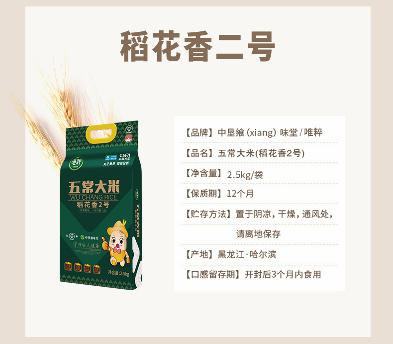 商品名称:唯粹五常稻花香2号大米 2.5kg