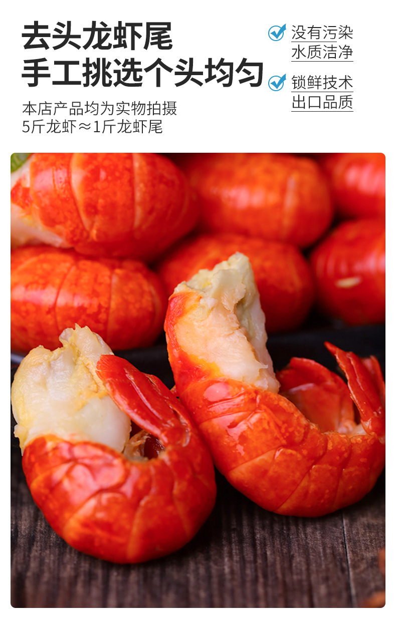 商品名称:鱼趣多冷冻无冰衣速冻龙虾尾每斤150头*3斤