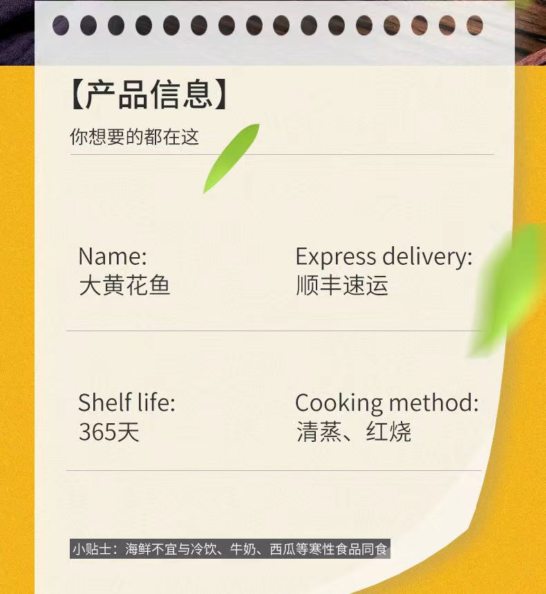 商品名称:鲜知肴 大黄鱼 新鲜冷冻生鲜水产鲜活冰鲜海鱼 大黄鱼 发2斤 1-1.1两(一条)