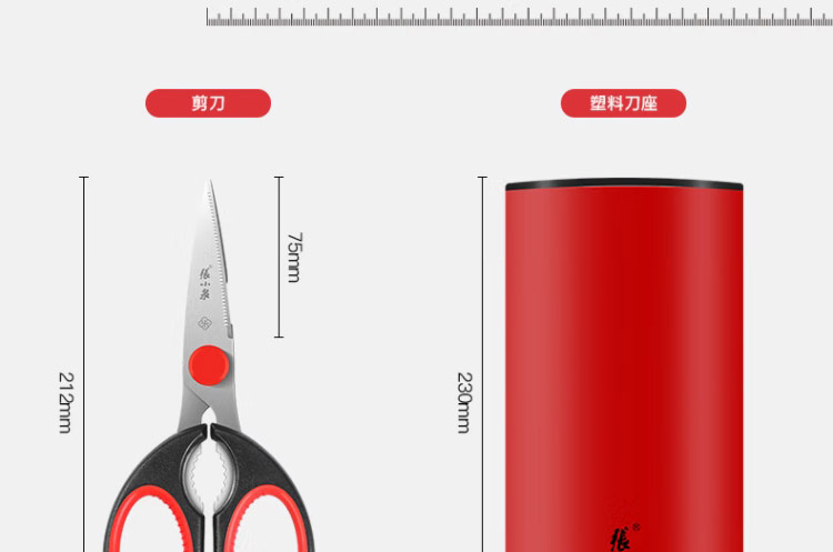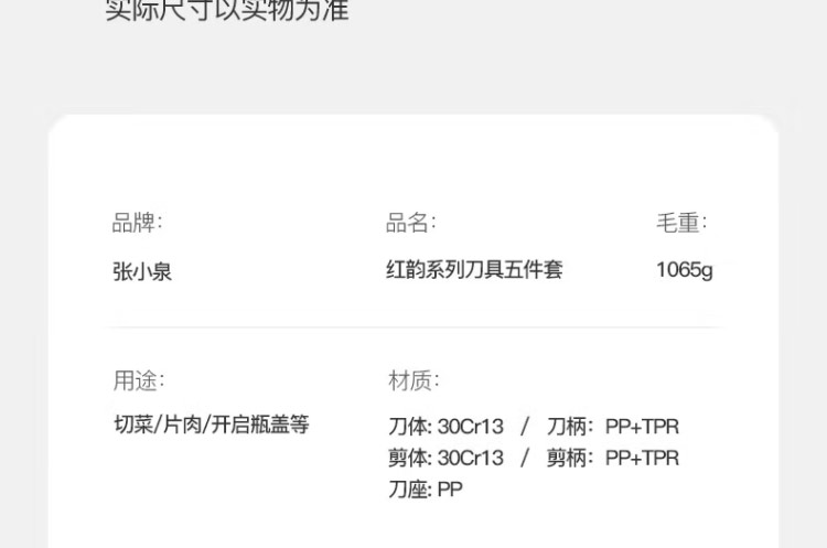 商品名称:J-张小泉红韵系列不锈钢刀具菜刀水果刀五件套 刀具套装 D40460200