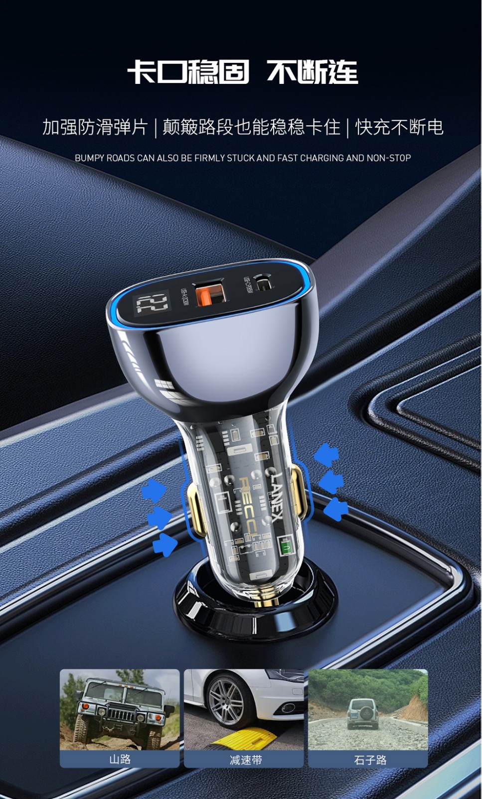 商品名称:锐思(Recci)征途车载充电器RCC-N21透明黑