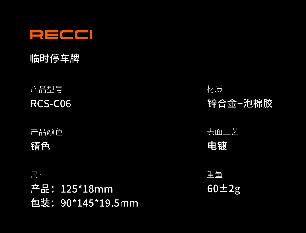商品名称:锐思(Recci)临时停车牌RCS-C06 锖色 6955482519790