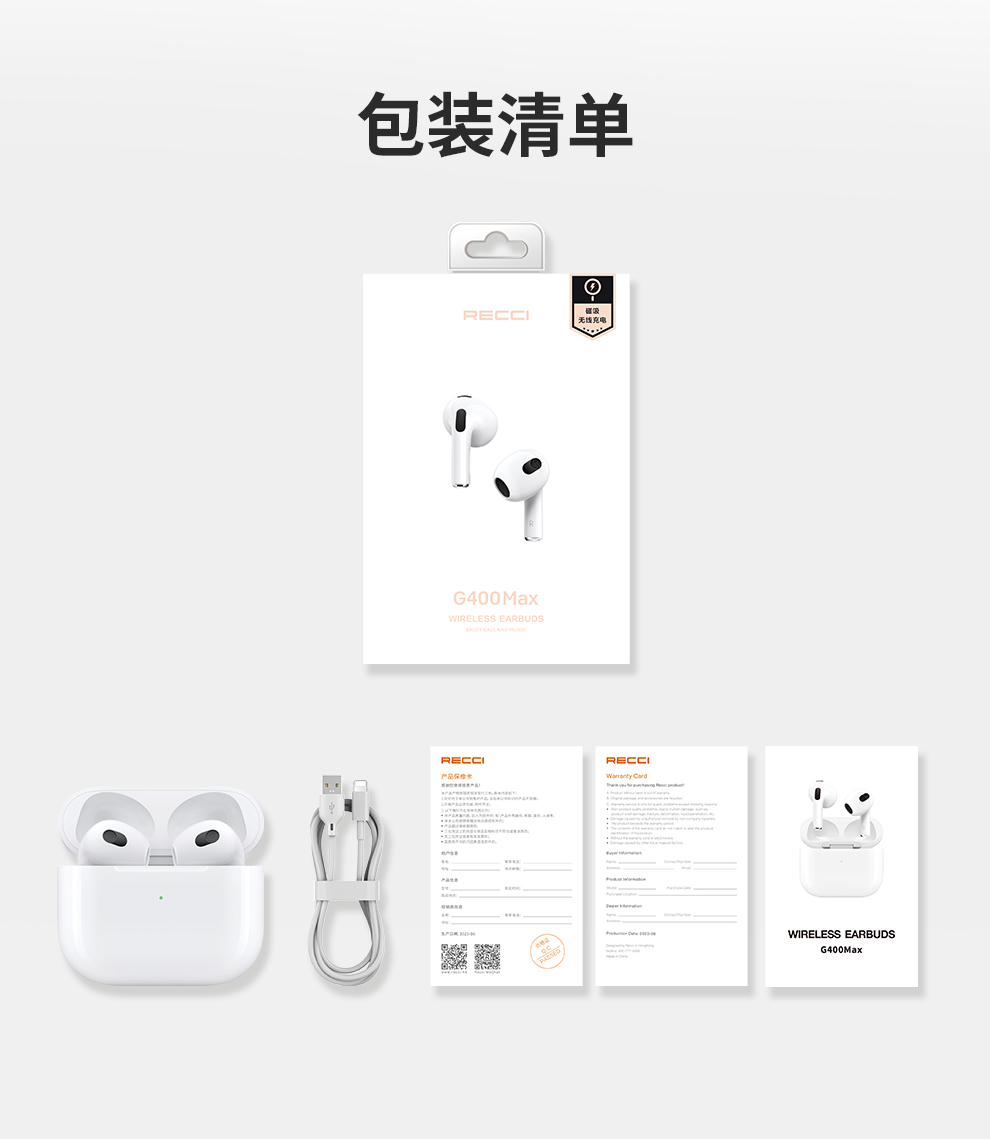 商品名称:锐思(Recci)四代 高配版蓝牙耳机G400 Max 白色