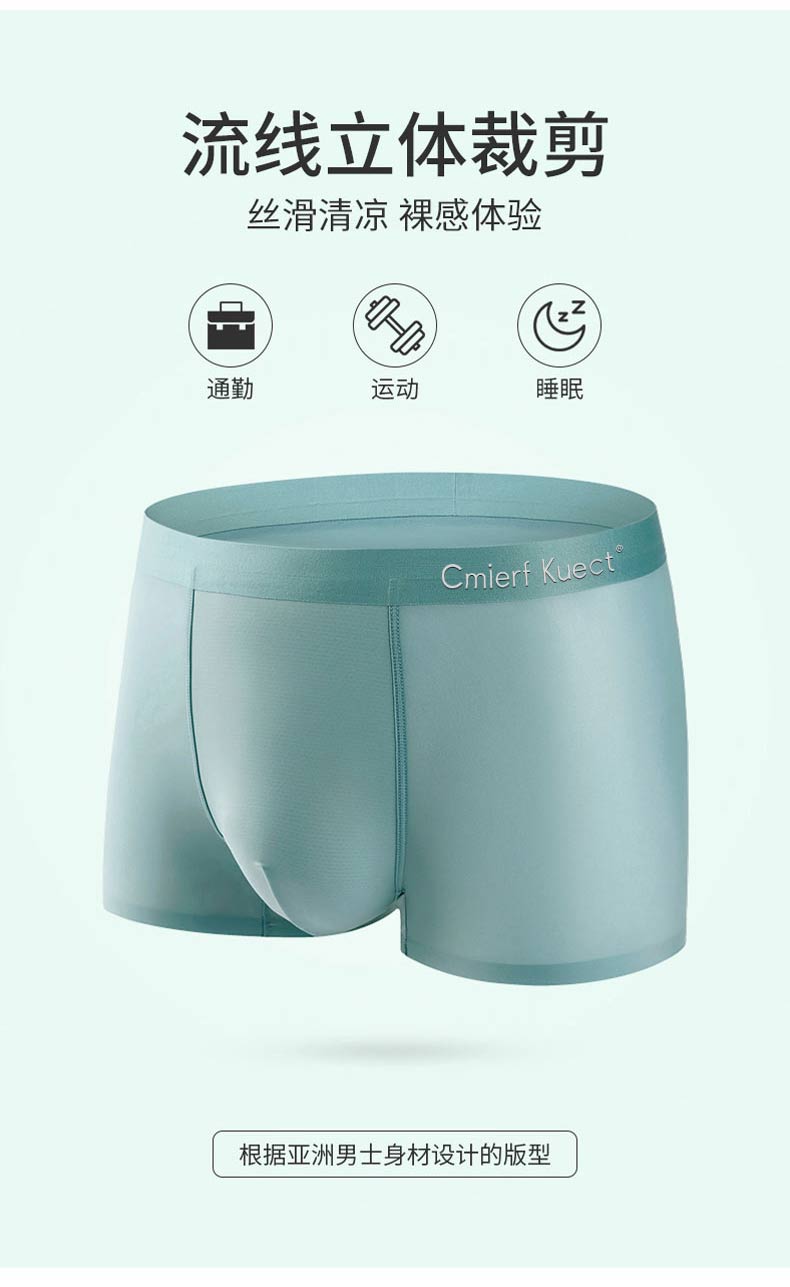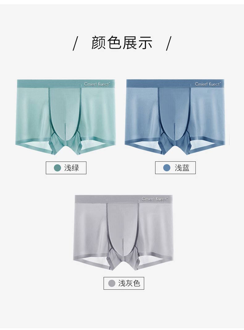 商品名称:Cmierf Kuect(中国CKIR)透气抗菌无痕男士内裤三条装(浅绿+浅蓝+浅灰 ) CKIR-NY1176 L/XL/XXL/3XL下单备注尺码(新疆西藏宁夏青海内蒙古甘肃黑龙江吉林辽宁不发货)
