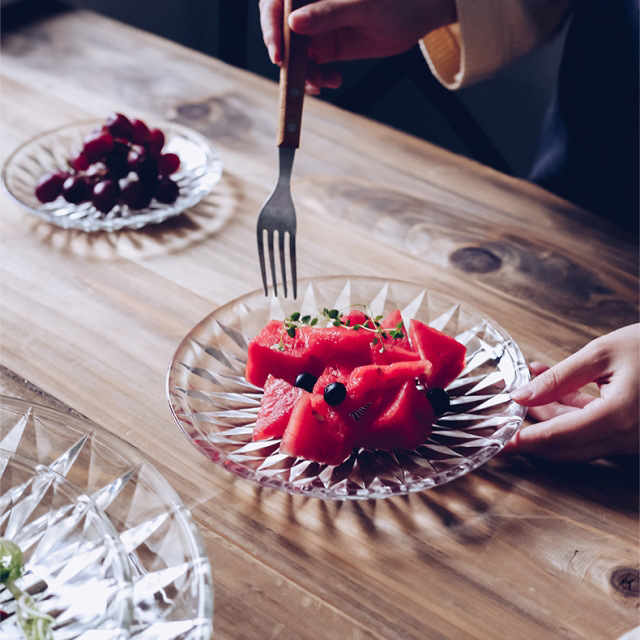 璃颜 水果盘套装透明玻璃盘钻石花纹10寸