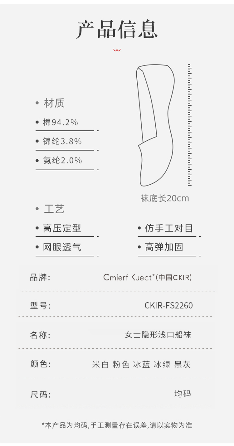 商品名称:Cmierf Kuect (中国CKIR) 网孔隐形浅口船袜女5双装 CKIR-FS2260 米白 粉色 冰蓝 冰绿 黑灰 (新疆,西藏,宁夏,青海,内蒙古,甘肃,黑龙江,吉林,辽宁不发货)