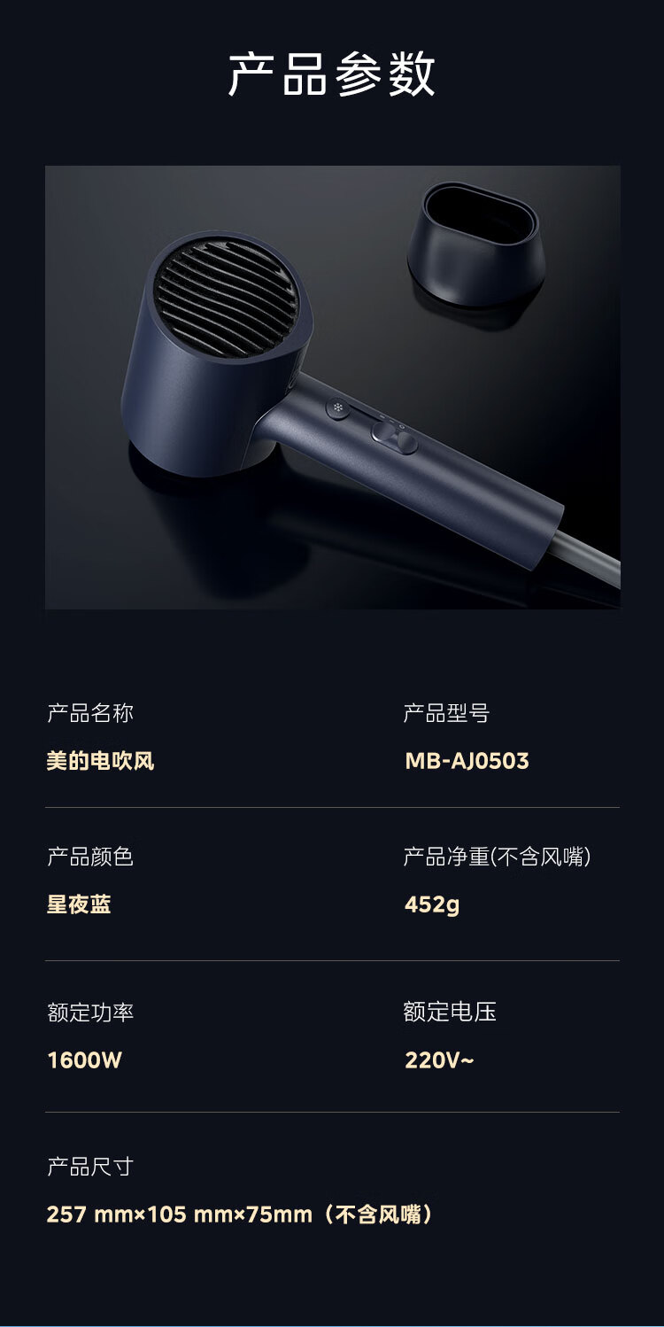 商品名称:美的小水滴电吹风 MB-AJ0503 6973540203337