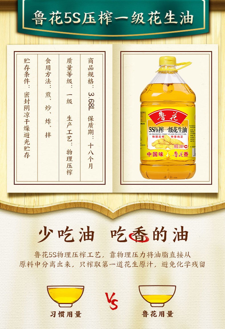 商品名称:鲁花 5S压榨一级花生油3.68L*2 CP006132