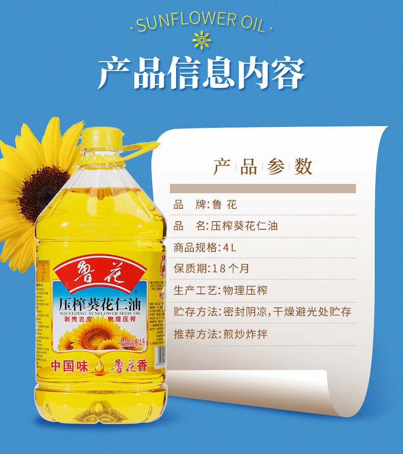 商品名称:鲁花 葵花仁油4L*1 CP004984