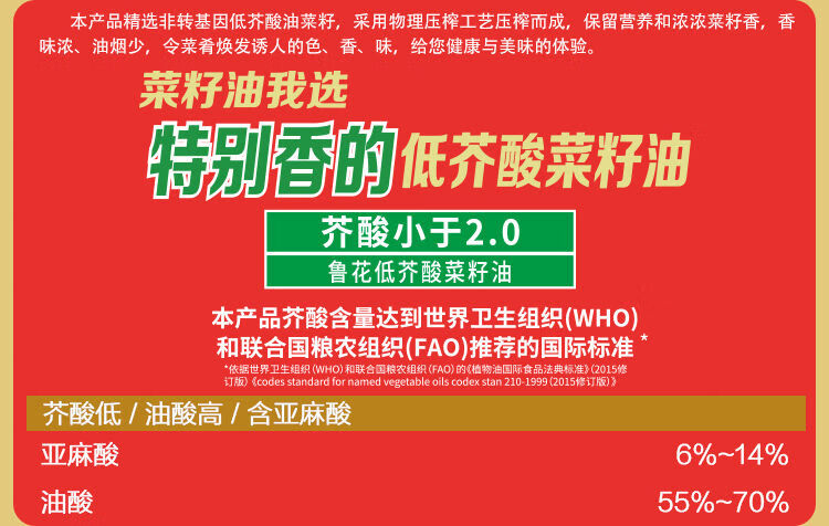 商品名称:鲁花 低芥酸特香菜籽油5L*2 CP003677