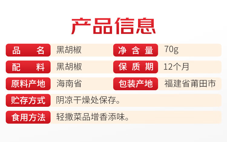 商品名称:方家铺子 海盐黑胡椒70g/瓶装