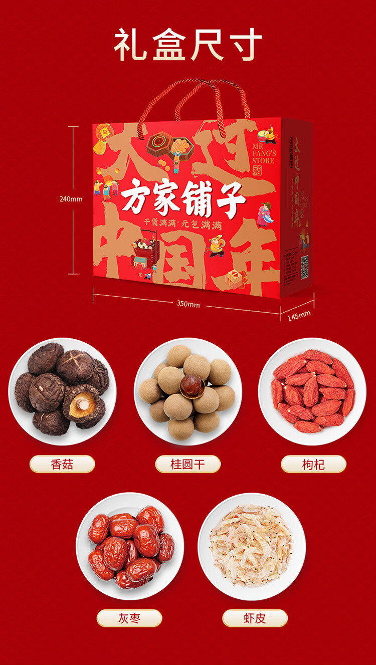商品名称:方家铺子 兴隆菌菇干货节日礼盒950g/礼盒装