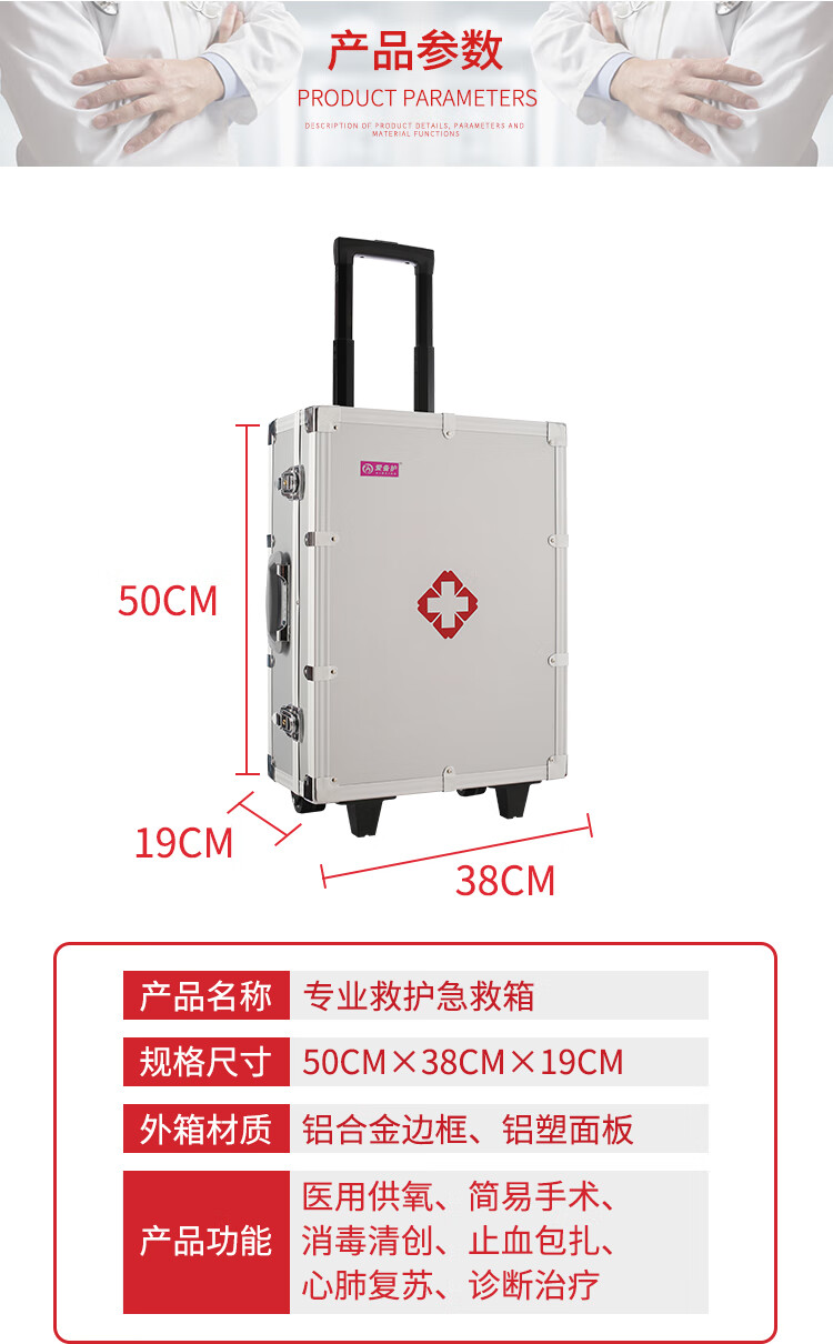 商品名称:爱备护 家庭人防应急包系 专业救护急救箱(外科型)ABH-M004B(带拉杆)